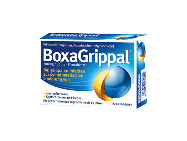 - BoxaGrippal® ist ein rezeptfreies Arzneimittel mit der bewährten Wirkstoffkombination aus Ibuprofen und Pseudoephedrinhydrochlorid
